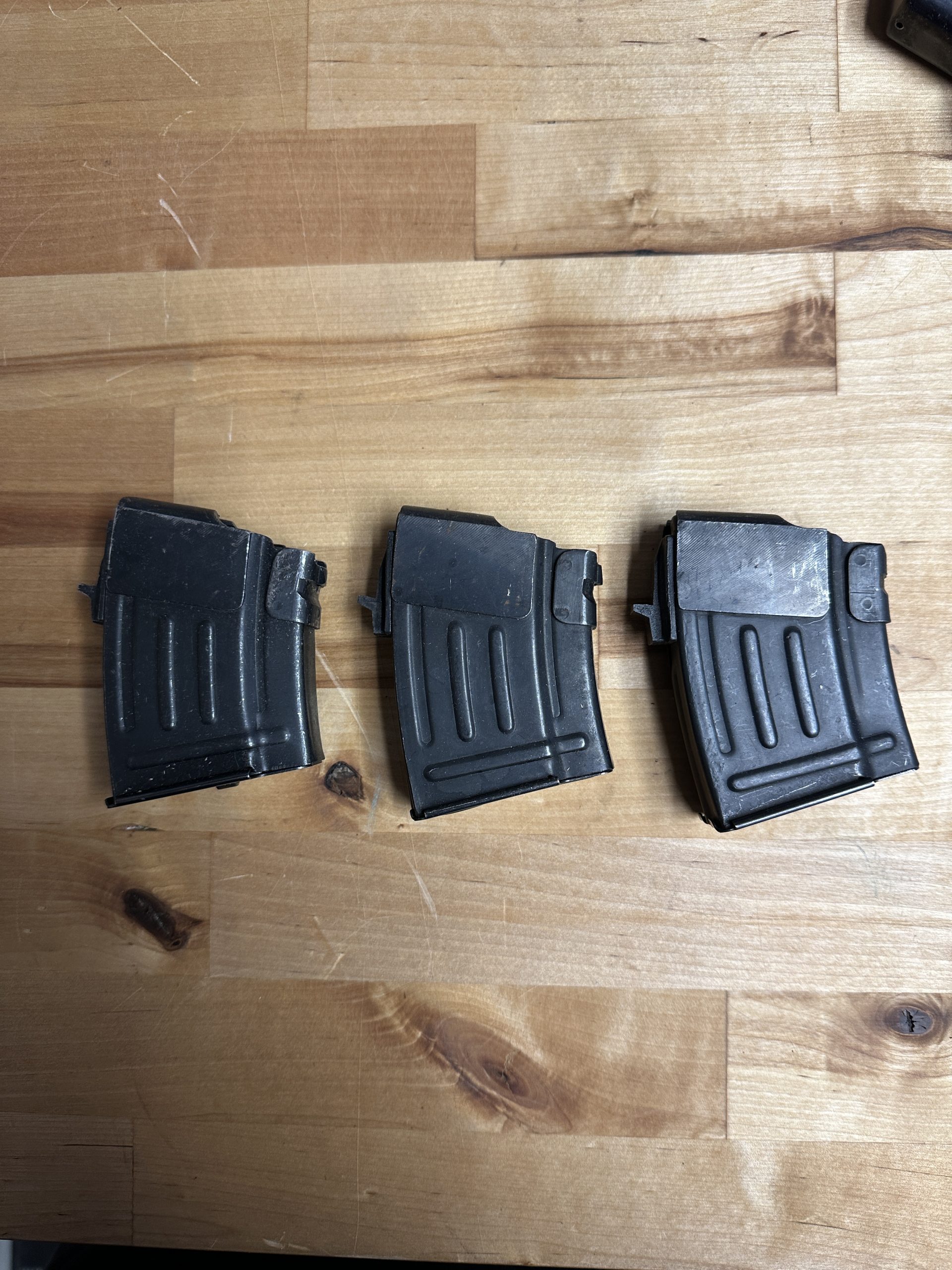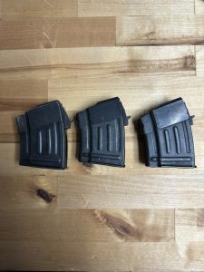 These are 2 Chinese 5 round flatback magazines in great shape. The 3rd magazine is dimensionally correct, but looks different on bottom plate. They work well and strong springs. This sale includes all 3 magazines