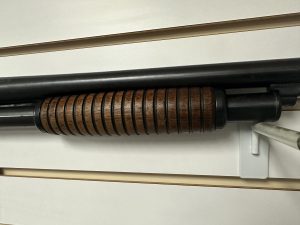This model 820B is missing the butt stock and the trigger assembly.The trigger guard screws are in place. You will need a trigger assembly and a butt stock. The end of the Adjustable choke is also missing